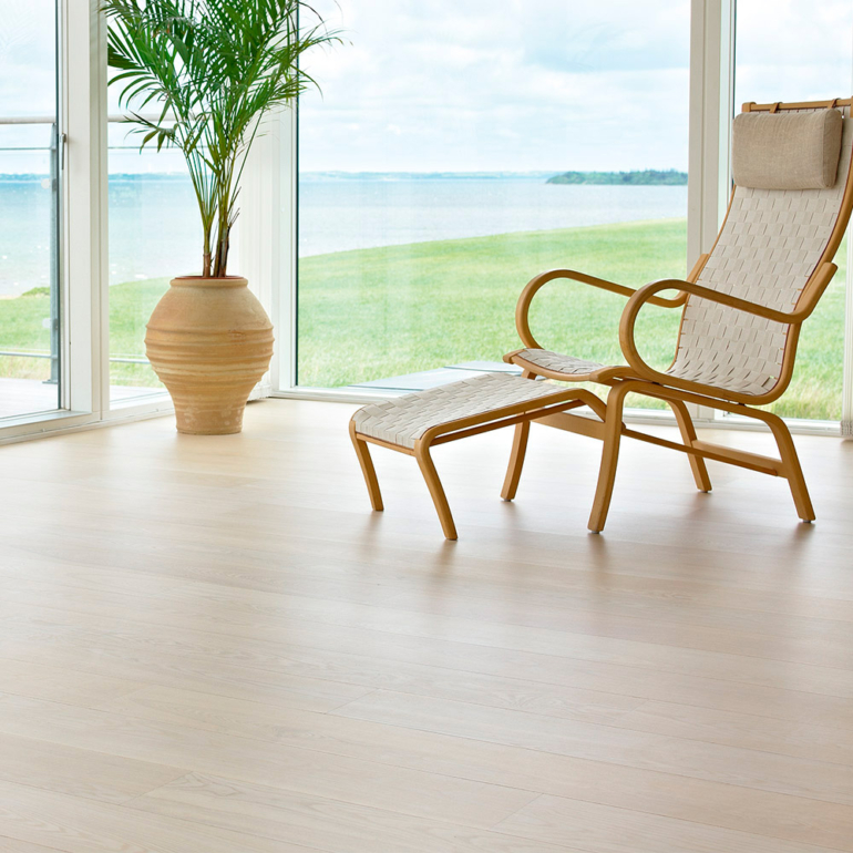 Et eksklusivt askegulv med vakkert årringespill og svært lite kvist. Et gulv som gir et naturlig utseende og et nordisk uttrykk.