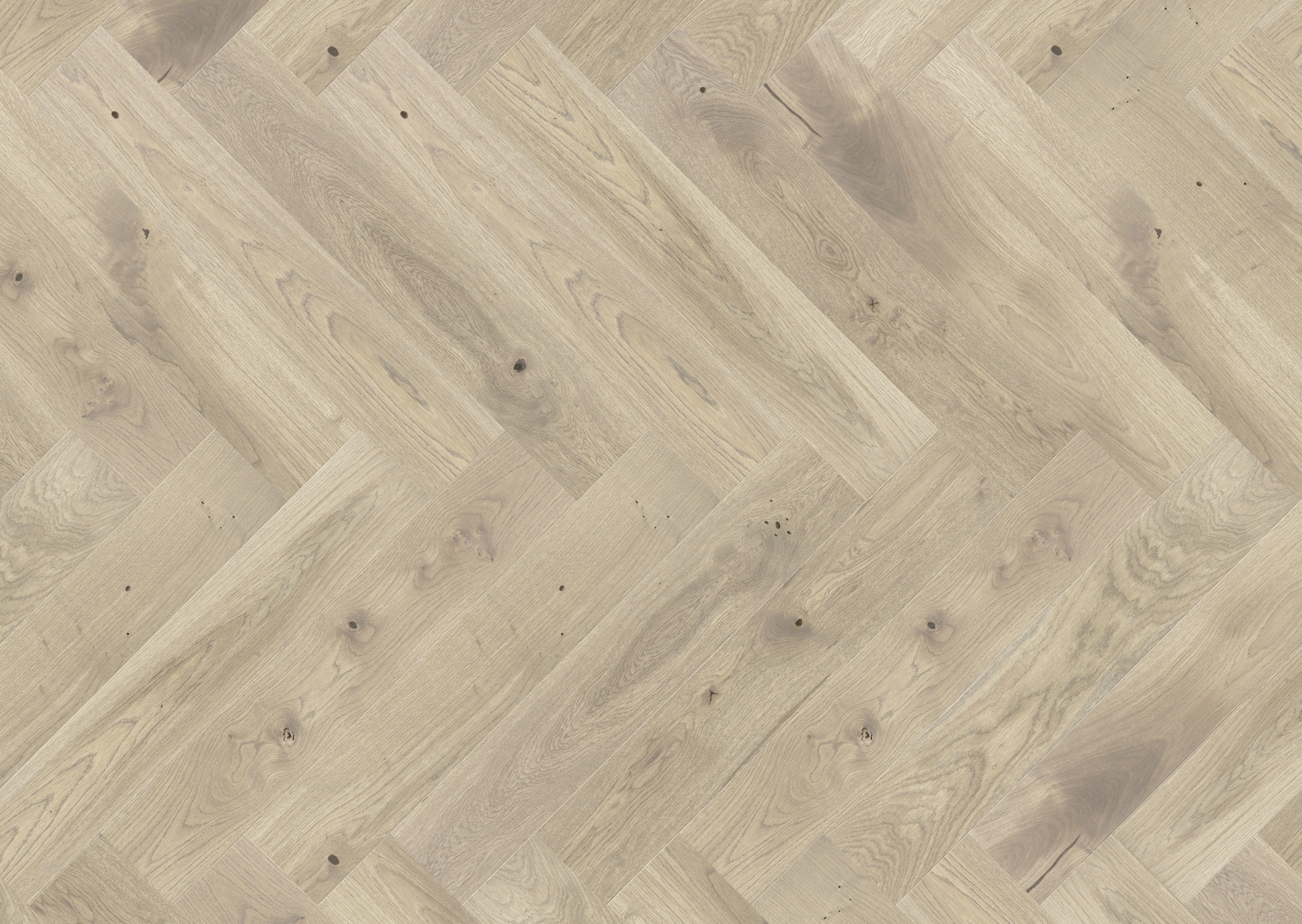 Eik Damsgård Fiskeben er et klassisk og tidløst parkettgulv med børstet, hvitoljet overflate. Det elegante fiskebensmønsteret gir rommet et herskapelig og sofistikert preg.